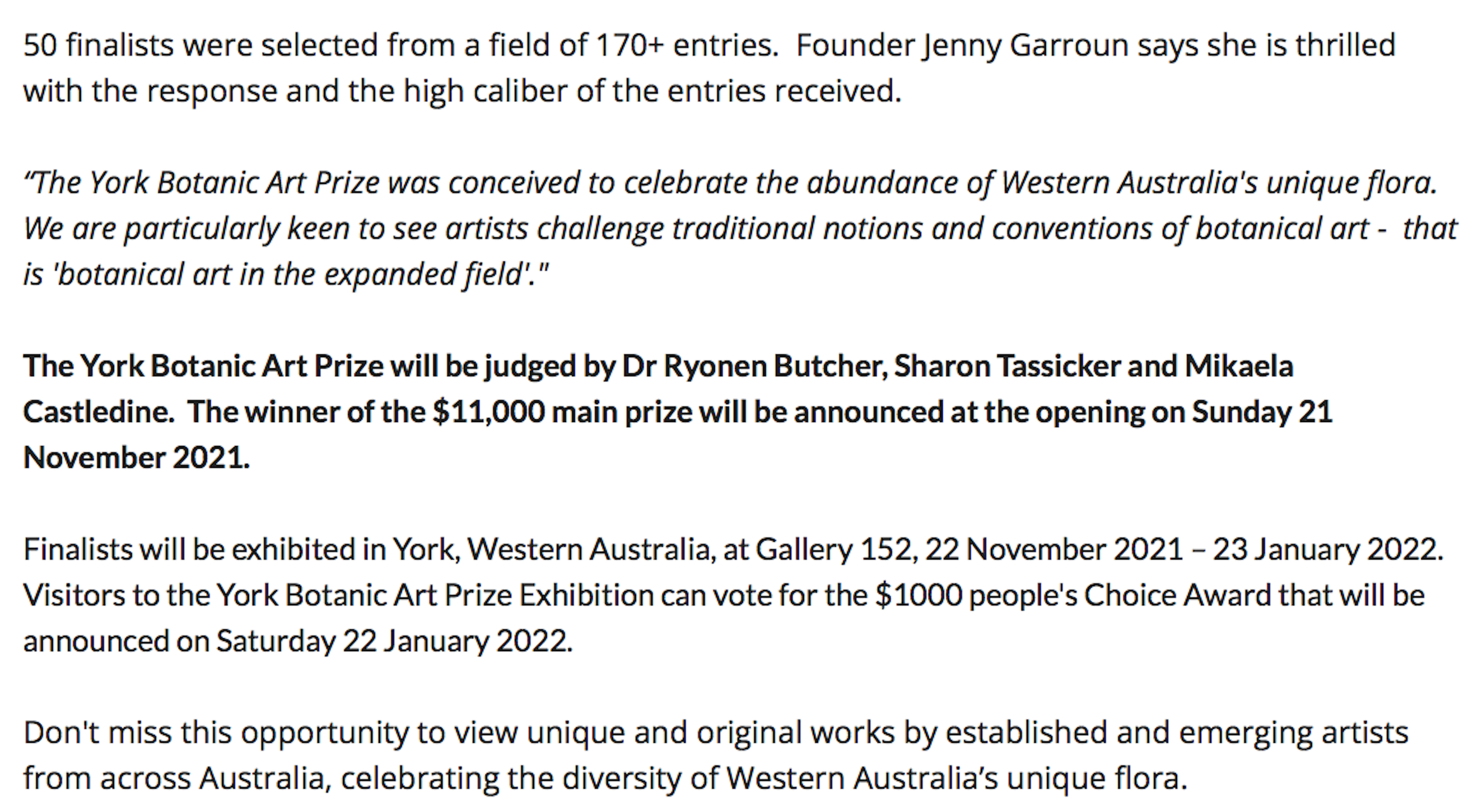 2021York Botanic Art Prize Gallery 152, York, Western Australia.
